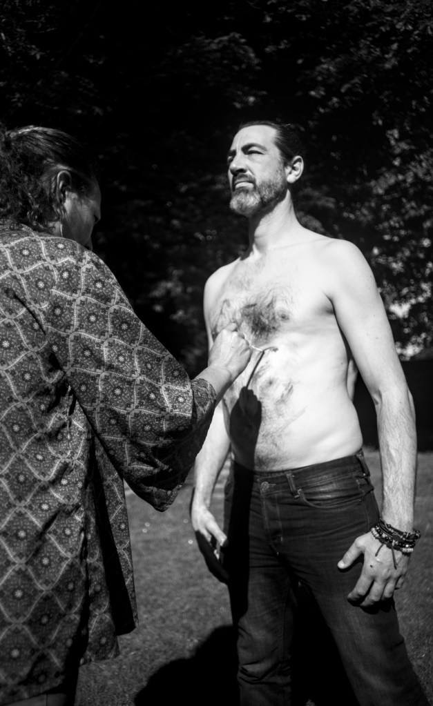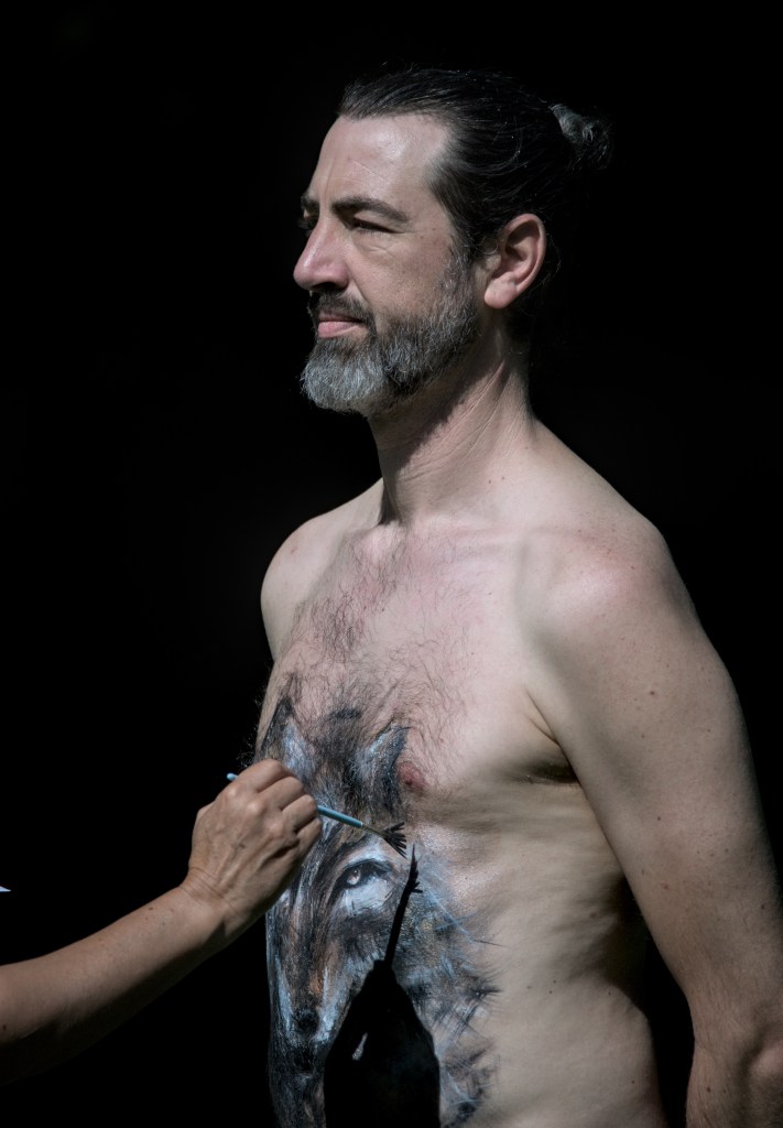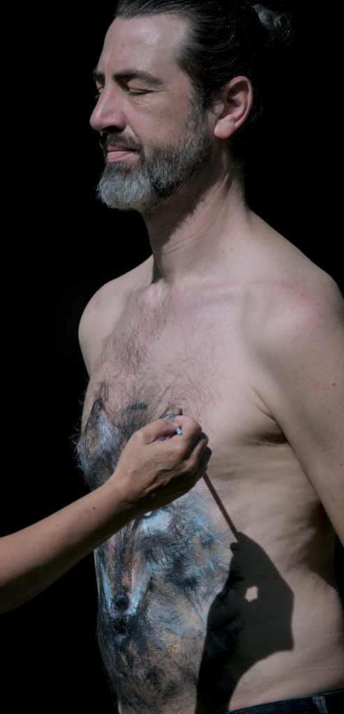 « Bonjour, je m’appelle Gaylord et je vous partage cette belle expérience que Sophie m’a proposé. Curieux et ouvert, il ne m’a pas fallu longtemps pour accepter sa proposition de body-painting. Sa bienveillance et son écoute nous mettent en confiance. A travers nos échanges et sa vision, elle a su mettre en avant une partie inconsciente de ma personnalité avec justesse. Cela m’a redonné force et courage et je lui en suis immensément reconnaissant. Merci mille fois à toi Sophie pour cet accompagnement et à Jean-Guillaume d’avoir immortalisé cette transformation. »