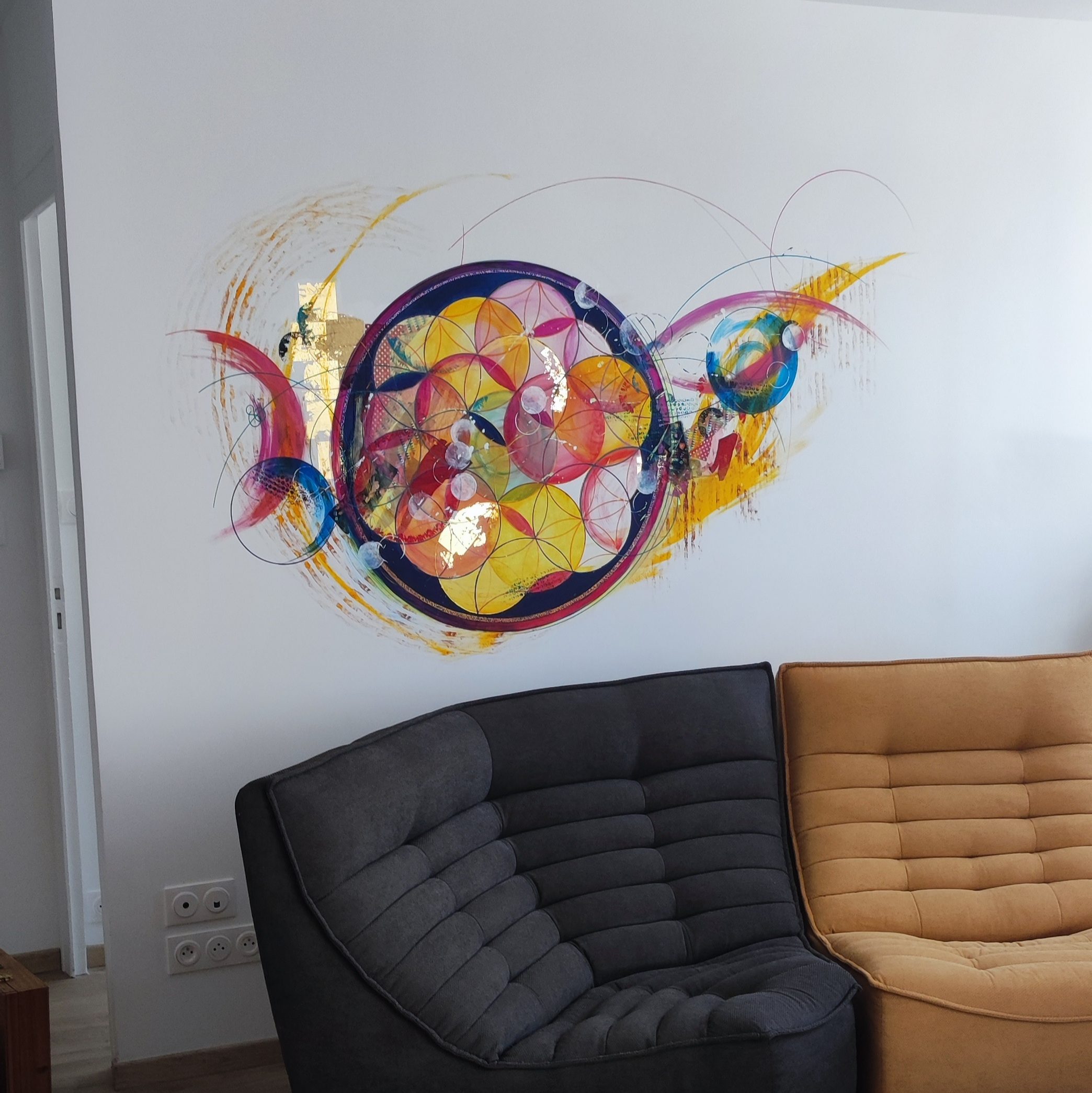 Il est très intéressant pour moi de travailler avec ces formes, de chercher les couleurs qui vont entrer en résonance avec celles-ci. De cette façon, nous pouvons créer des œuvres originales et adaptées à vos envie et vos besoins énergétiques. … Personnalisable à souhait !