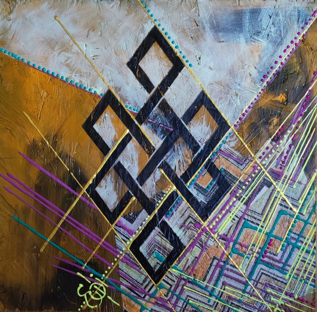 Le Nœud sans fin, aussi appelé nœud éternel, est un symbole ancien présent dans plusieurs traditions spirituelles, notamment le bouddhisme. Il représente l’interconnexion de tous les phénomènes, l’unité du temps et de l’éternité, ainsi que le cycle infini de la vie, de la mort et de la renaissance. Sans début ni fin, il symbolise aussi l’harmonie, la sagesse et la compassion.