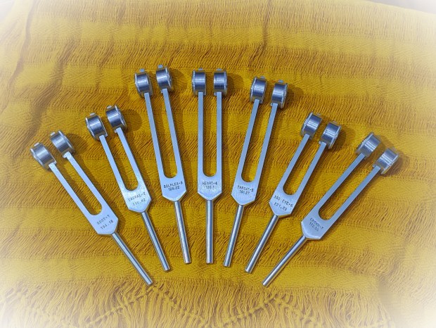 C’est un ensemble de 7 diapasons qui sont utilisés pour travailler avec les multiples dimensions cosmiques de nos chakras, nos corps subtils et d’autres passerelles de l’énergie.